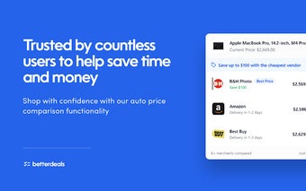 Betterdealsهو برنامج مجاني لـ Chrome، ينتمي إلى فئة 'الإضافات والأدوات'.